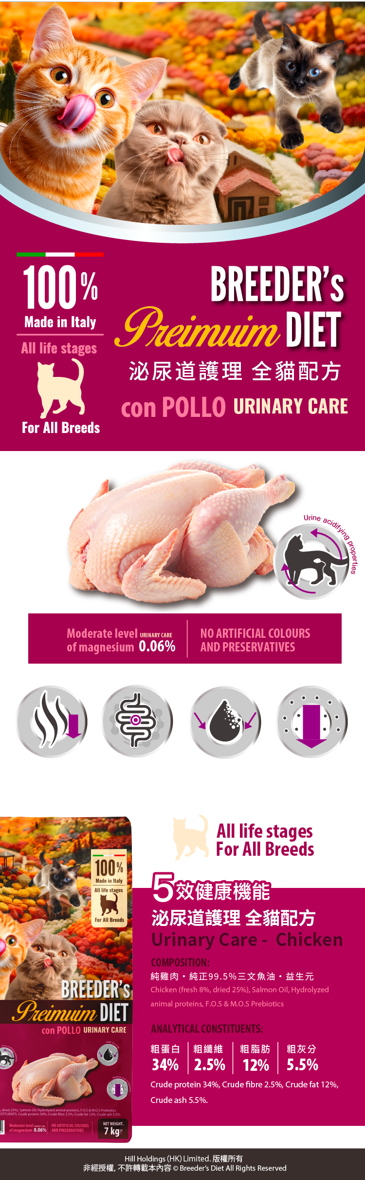 【2包優惠】Breeder’s Diet | 5效健康機能 泌尿道護理 全貓配方 7kg (BSC-1309)