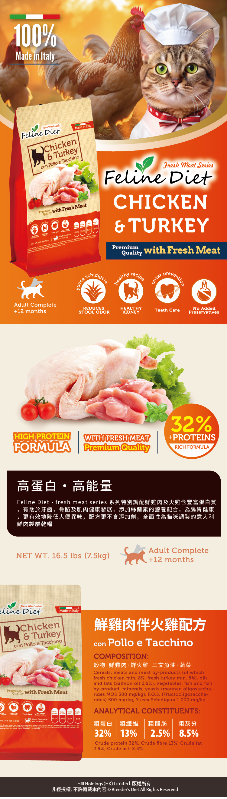 Feline Diet⎜鮮雞肉伴火雞配方貓乾糧 7.5kg