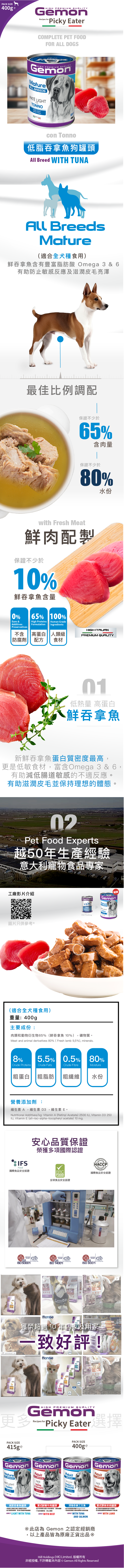 天然的吞拿魚及三文魚含有豐富的營養,配方專為1至8歲的中型成犬研製。
