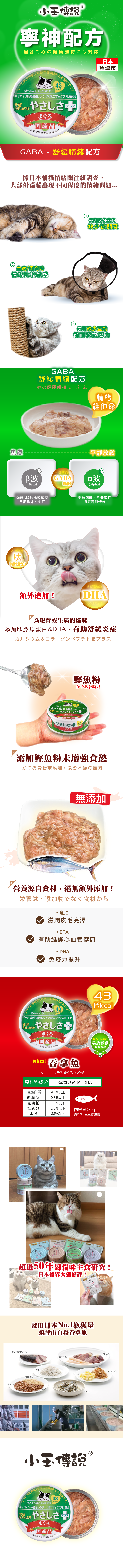 「寧神系列」專為【 情緒緊張及食慾不振 】貓咪而設, 據日本貓貓情緒關注組調查, 大部份貓貓出現不同程度的情緒問題... 特別添加GABA(情緒舒緩維他命)使普遍容易焦慮&失眠貓咪調節情緒起伏及改善睡眠品質 ! 為應對食慾不振問題,添加原鰹魚粉末,增強食慾!更將質感柔軟稠密,利於食慾不振貓咪吞嚥,水分高達至88%,無須額外加水使其口感變淡!全面照顧其貓咪需要!!