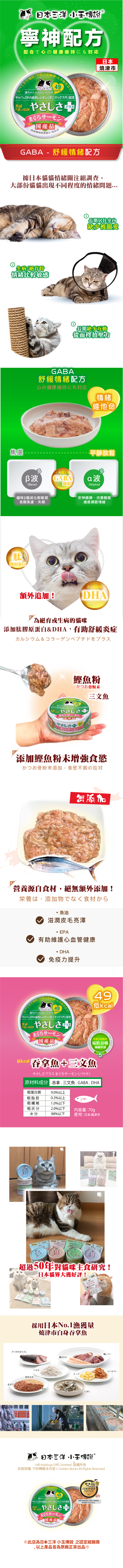 「寧神系列」專為【 情緒緊張及食慾不振 】貓咪而設, 據日本貓貓情緒關注組調查, 大部份貓貓出現不同程度的情緒問題... 特別添加GABA(情緒舒緩維他命)使普遍容易焦慮&失眠貓咪調節情緒起伏及改善睡眠品質 ! 為應對食慾不振問題,添加原鰹魚粉末,增強食慾!更將質感柔軟稠密,利於食慾不振貓咪吞嚥,水分高達至88%,無須額外加水使其口感變淡!全面照顧其貓咪需要!!