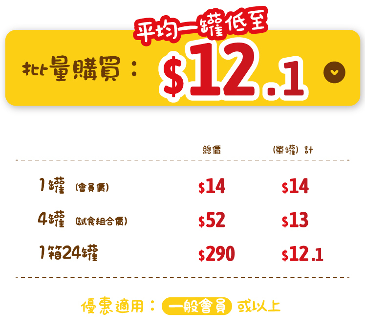 指定商品,罐罐大割引|買6送1 買20送4 ($14)
