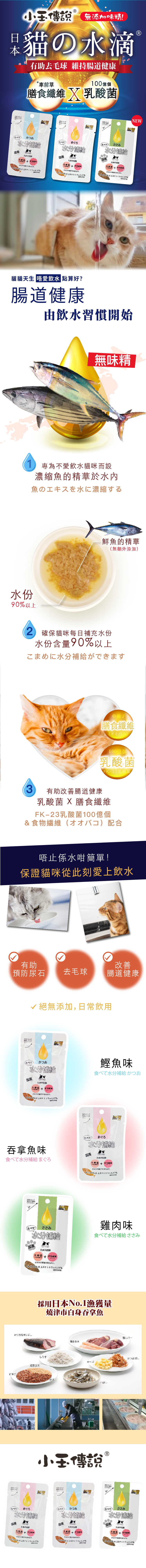 - 特別為不愛喝水 / 經常吃乾糧的貓咪而設