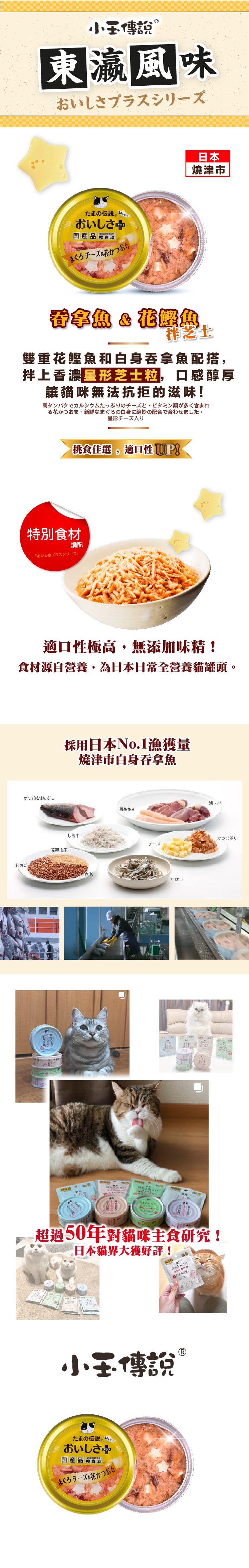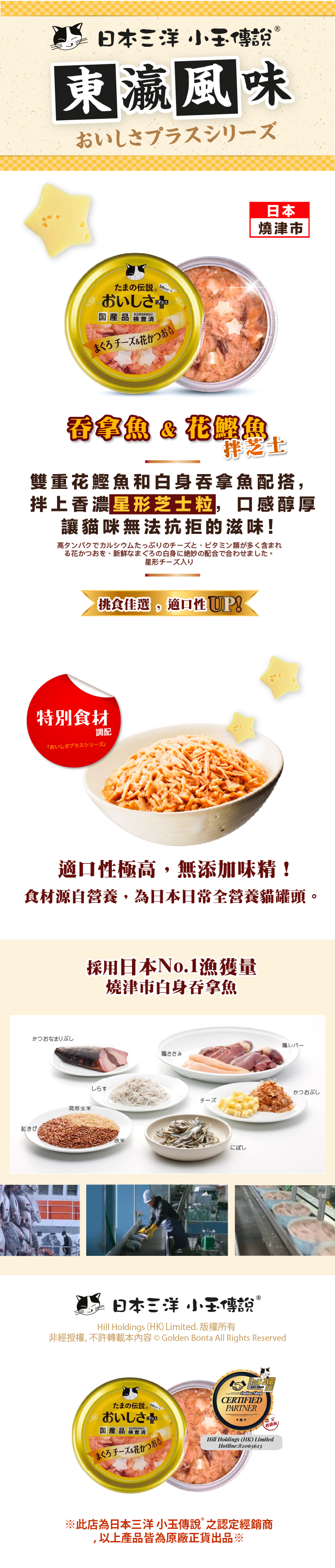 東瀛風味系列專為【 挑食貓咪 】而設,是以日本No.1漁獲量的燒津市🇯🇵白身吞拿魚為基礎,再分別加入海藻、芝士、沙甸魚及雞胸肉來增加罐頭風味,適口性大大提升!!