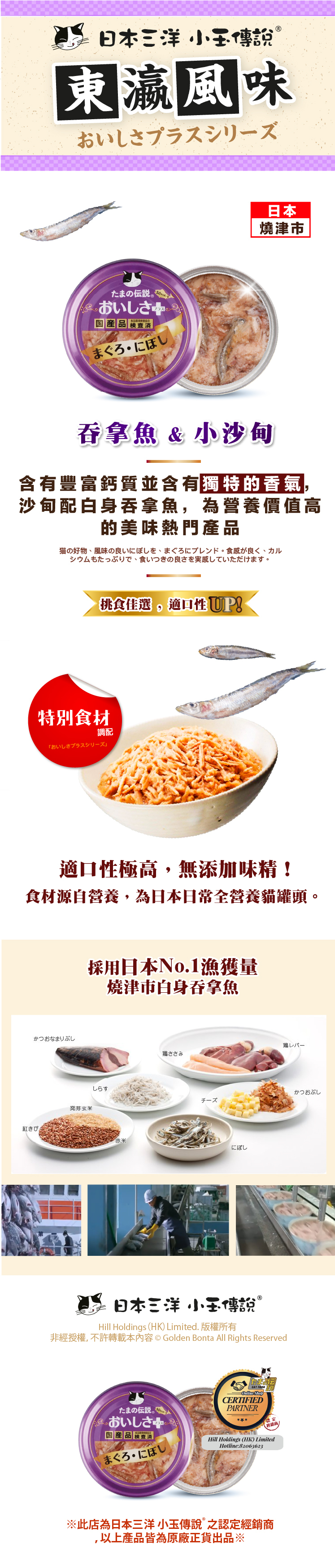東瀛風味系列專為【 挑食貓咪 】而設,是以日本No.1漁獲量的燒津市🇯🇵白身吞拿魚為基礎,再分別加入海藻、芝士、沙甸魚及雞胸肉來增加罐頭風味,適口性大大提升!!