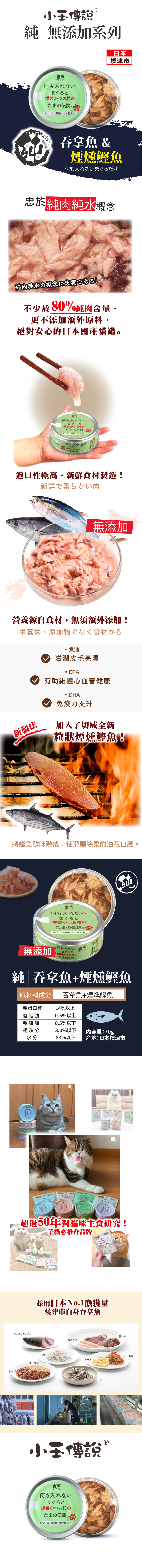 人氣的純系列推出「純無添加吞拿魚+煙燻鰹魚」中加入了切成全新粒狀熏制鰹魚,將鰹魚鮮味熟成,使滑順絲柔的油花口感,帶著點煙燻的風味與鹹味。