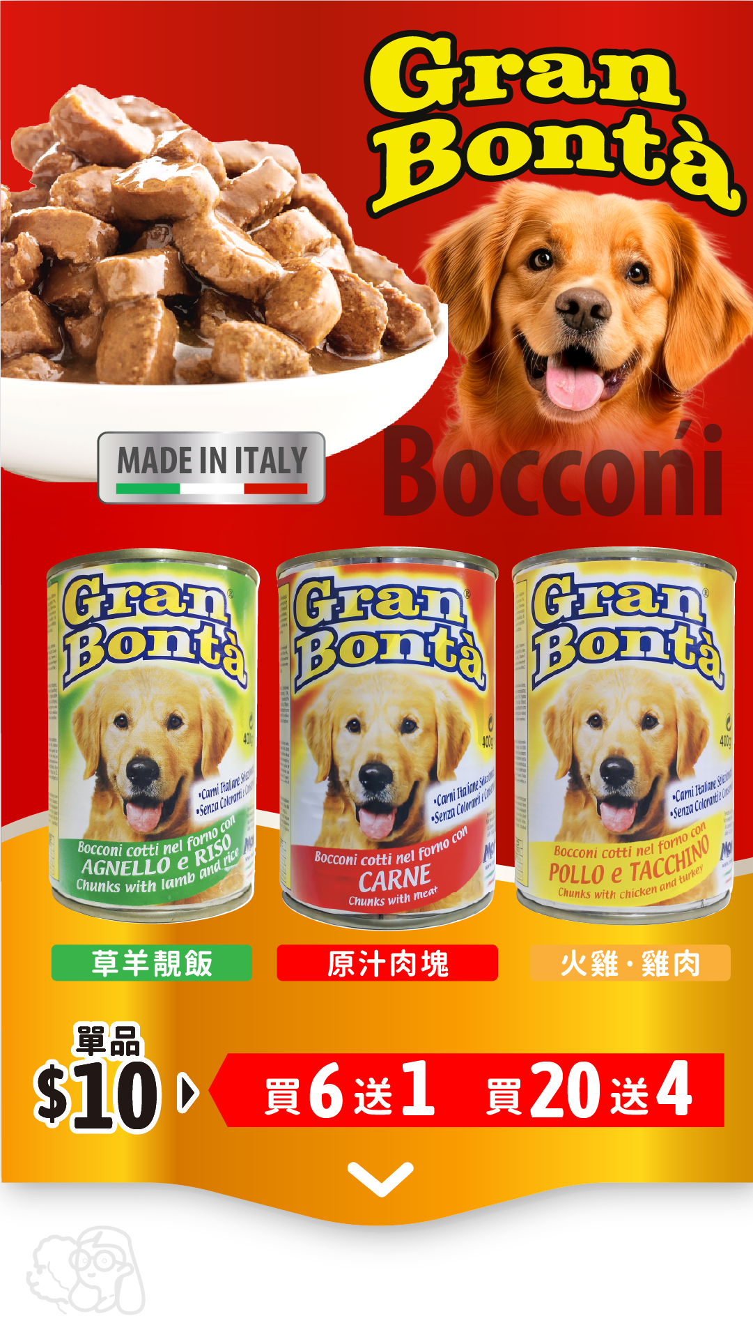 【買20送4】Gran Bonta|原汁肉塊 狗罐頭 400g (平均$8.3)