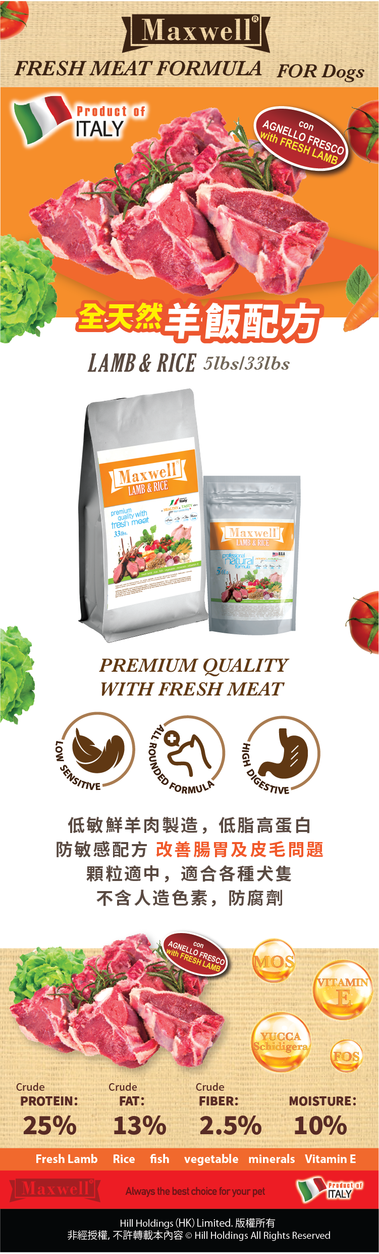 Maxwell丨Lamb & Rice 鮮羊肉加飯成犬糧 33lbs